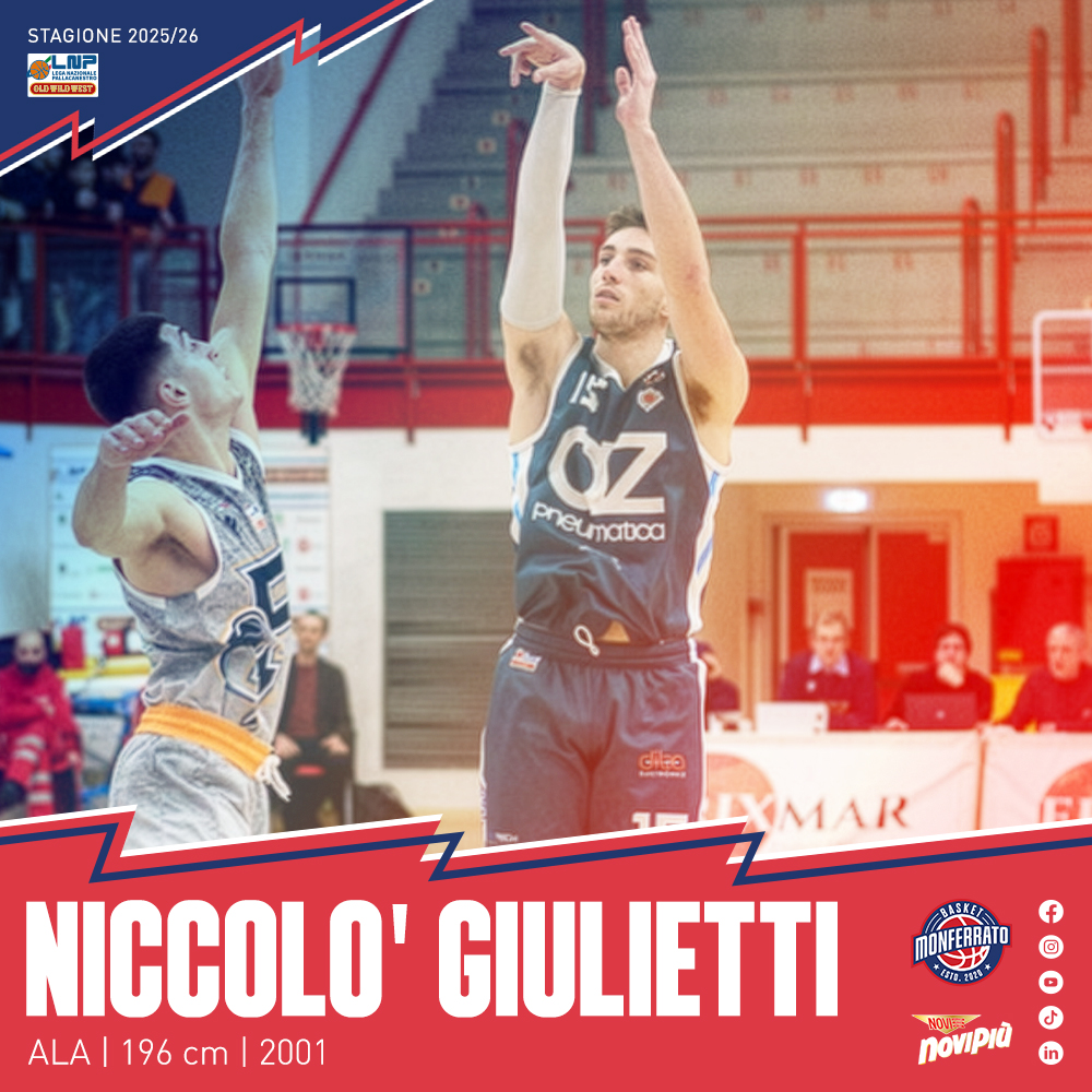 La Novipiù Monferrato Basket aggiunge esperienza e qualità al proprio roster in vista del finale di stagione. Si unisce al gruppo Niccolò Giulietti, ala di 196 centimetri, classe 2001, profilo...